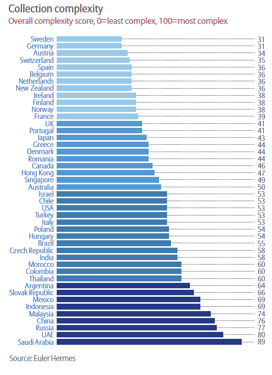- Euler Hermes Ökonomen erstellen Rangliste von 44 Staaten und beurteilen darin den unterschiedlichen Schwierigkeitsgrad beim Eintreiben von ausstehenden Zahlungen