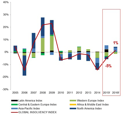 - Steigendes Risiko: Weltweite Insolvenzen steigen 2016 voraussichtlich erstmals seit 2009 wieder um 1% an